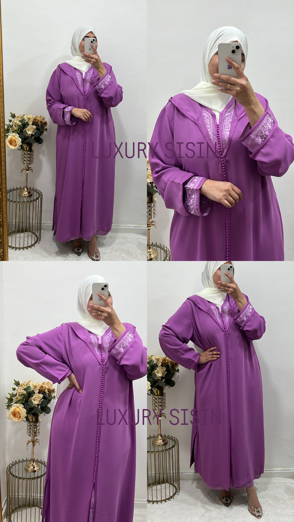 Jelaba de dos piezas, la parte de arriba tela crep y la parte de abajo tela muslim.