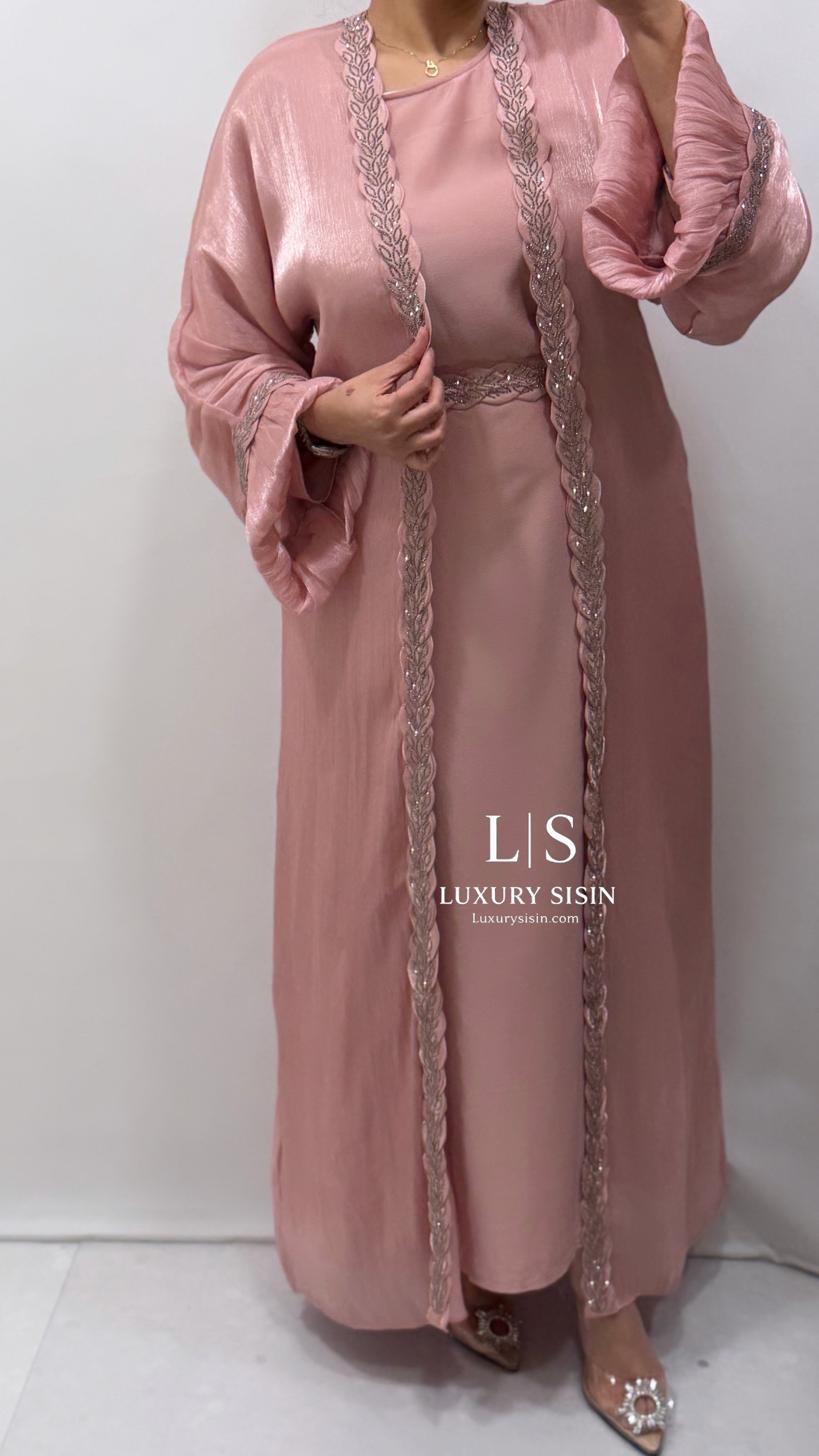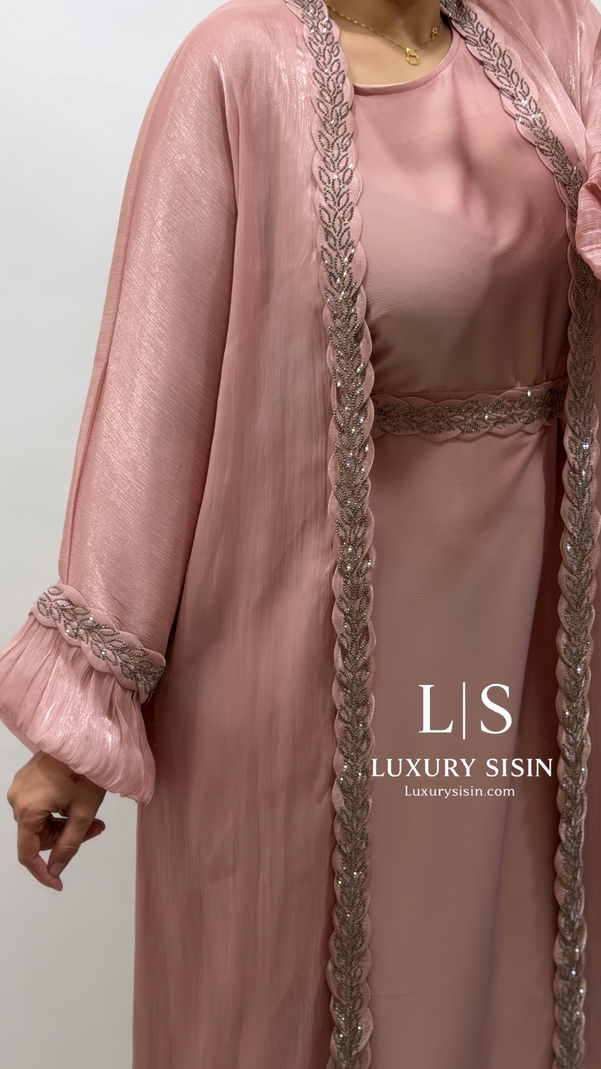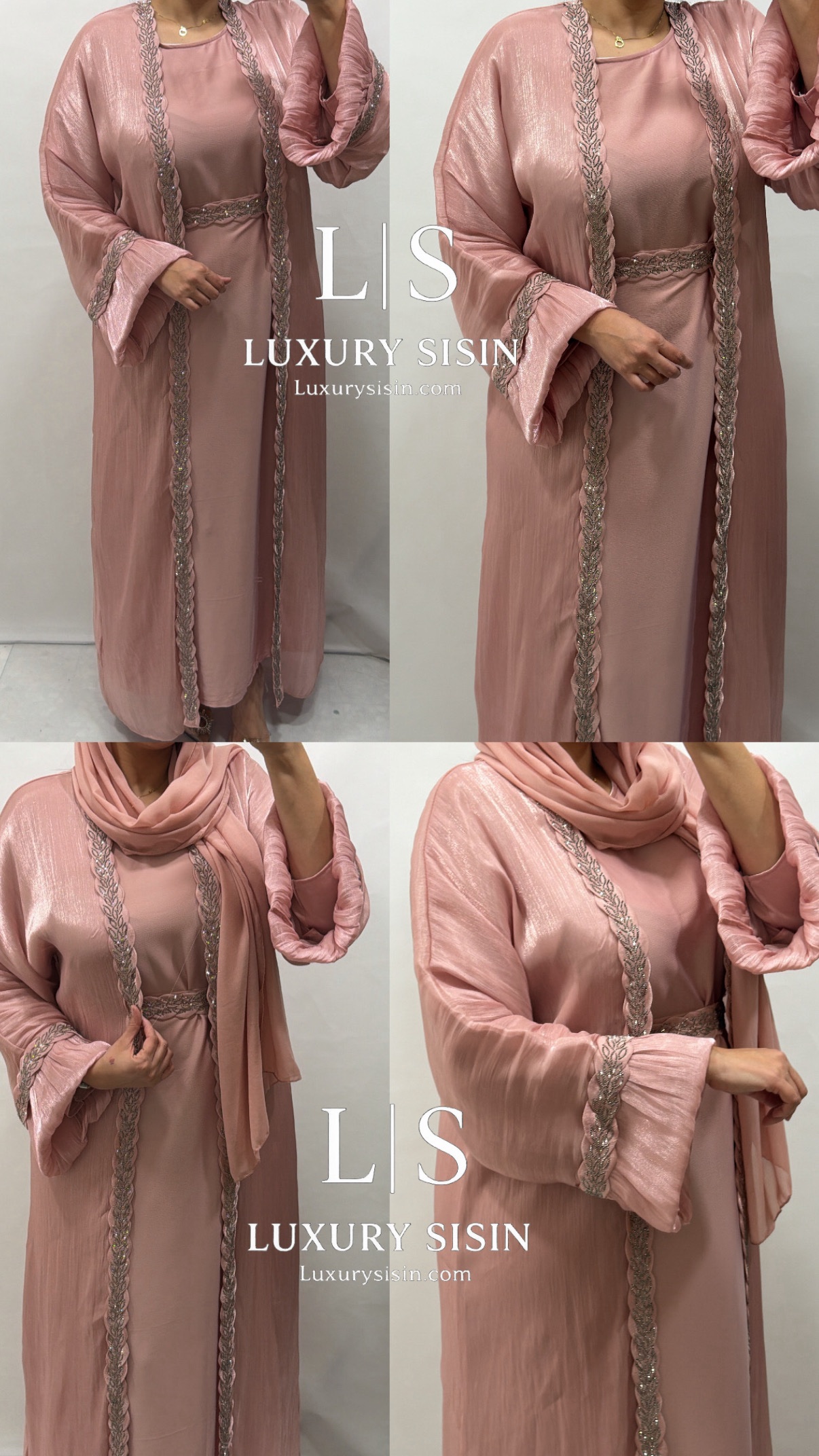 Kimono compuesto por vestido interior, hijab y cinturón. Es talla única.